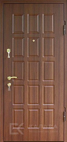 Фото «Металлическая дверь венге с квадратными филёнками и центральной планкой №360»