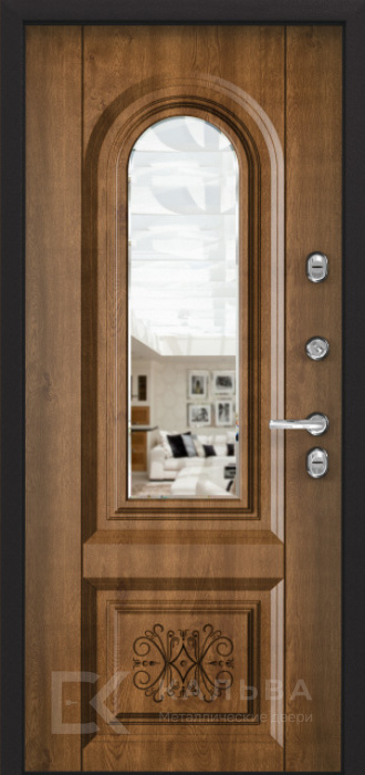 Фото №2 «Стальная дверь классика тёмная с арочным зеркалом орех №54»
